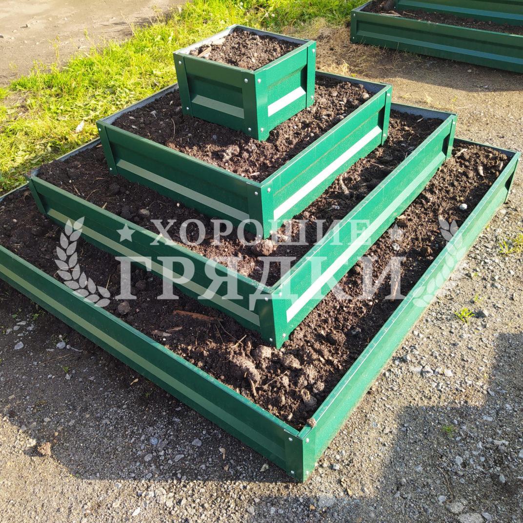 Клумба зеленая «Квадратная 3 яруса» 1.5х1.5м — 1.1х1.1м — 0.7х0.7м